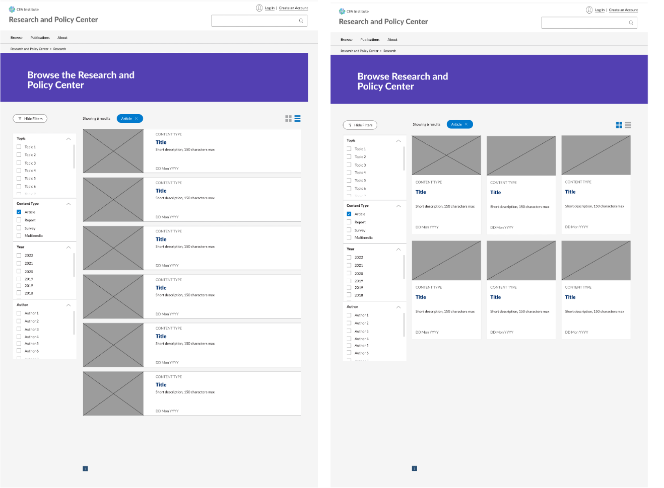 Scope: Design a new experience where users can easily search only research related content, utilizing the existing pattern library.